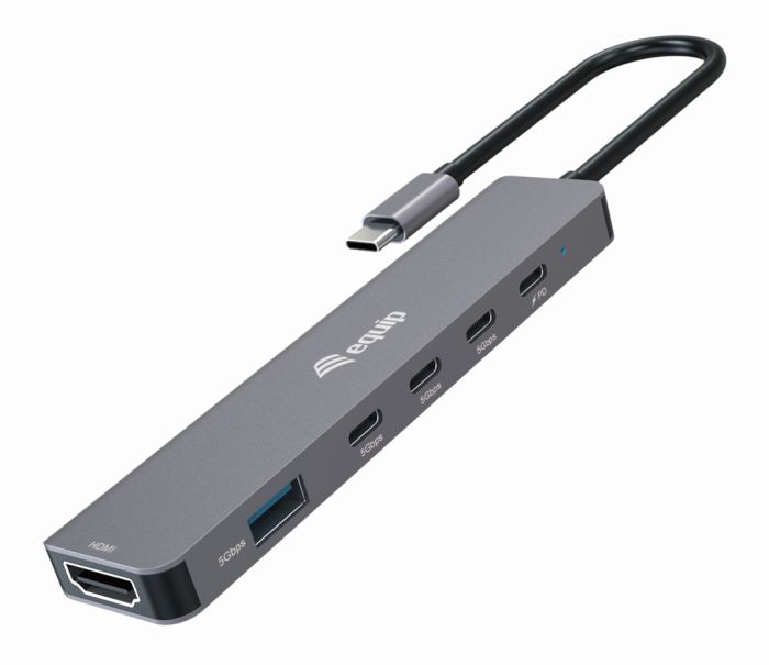 Der Equip 133500 USB-C 6-in-1 Multifunktionsadapter ist ein kompaktes und vielseitiges Zubehör, das die Konnektivität moderner Laptops, Tablets und Smartphones mit USB-C-Anschlüssen maximiert. Dieser Adapter wurde für Mobilität und Komfort entwickelt und vereint sechs wichtige Funktionen in einem schlanken Gerät, sodass Sie nicht mehrere Dongles mitführen müssen.