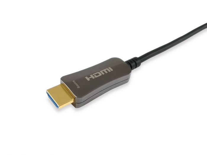 Il cavo ottico attivo (AOC) serie Equip 11943x è una tecnologia di cablaggio che accetta gli stessi ingressi elettrici di un tradizionale cavo in rame, ma utilizza la fibra ottica tra i connettori per estendere i segnali HDMI senza perdita o latenza. Il nostro design ibrido del cavo è costituito da fibre ottiche e fili di rame. I segnali TMDS ad alta velocità vengono trasmessi attraverso le fibre ottiche multimodali, mentre i segnali di controllo a bassa frequenza vengono trasmessi attraverso i fili di rame. La gamma di cavi ottici attivi offre fino a 100 m di distanza senza cali di qualità del segnale o la necessità di un alimentatore separato.